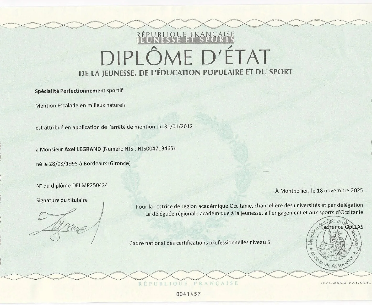 Dejeps escalade en milieu naturel - The highest-level, most advanced climbing instructor certification in France.